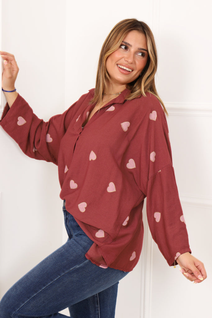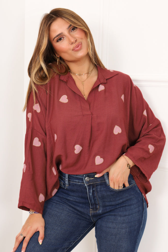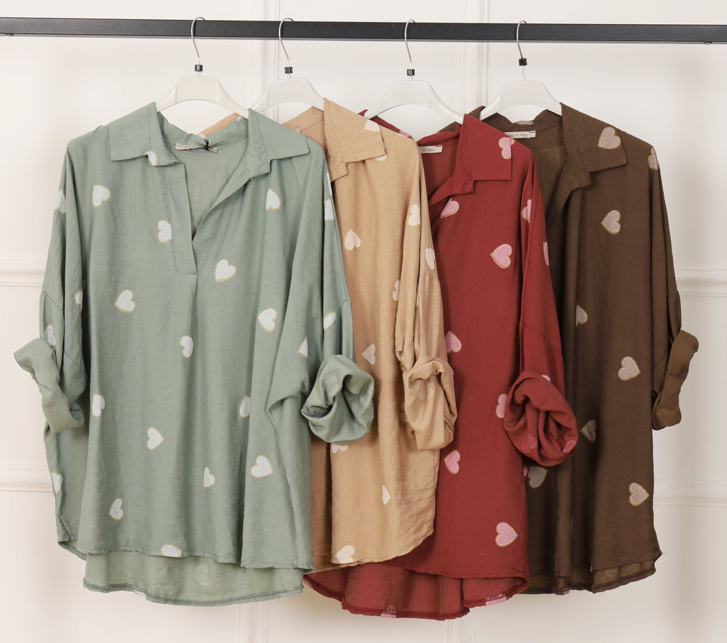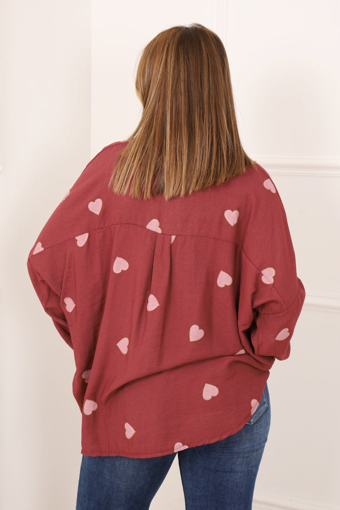 Tunique imprimée coeur. Matière agréable, pas besoin de repassage. Matière 90% viscose et 10% nylon.